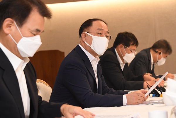▲ 홍남기 부총리 겸 기획재정부 장관이 11일 서울 광화문 정부서울청사에서 열린 ‘제28차 부동산시장 점검 관계장관회의’를 주재, 모두발언을 하고 있다. (사진=기획재정부)홍 부총리는 “지난달 28일부터 진행된 인천계양, 남양주진접2 등 1차 사전청약 4333가구에 대한 접수가 오늘 마감된다”며 “이중 특별공급분 경쟁률은 15.7대 1로 사전청약에 대한 국민들의 높은 관심도를 확인했다”고 말했다.