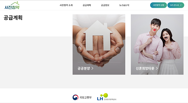 ▲ 사전청약 누리집 메인화면.사전청약 제도는 공공택지 등에서 공급되는 공공분양 주택의 공급시기를 조기화 하는 제도로 지난달부터 본격 시행했다.