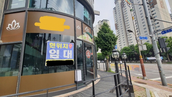 ▲ 한 상가 창문에 폐업 후 임대를 알리는 현수막이 붙어있는 모습.(사진=정책기자단)코로나19로 인한 경제위기 상황에서 오로지 상가임차인에게만 희생을 강요하기 보다는 임대인과 상생을 논할 수 있는 공정한 사회기반 조성이 시급하다.