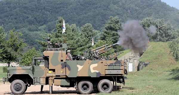 ▲ 육군12사단 예하 포병대 장병들이 8월 5일 강원도 인제군 서화 훈련장에서 열린 K105A1 자주포 사격훈련을 하고 있다. (출처=국방일보) 해군은 수상·수중·항공 입체전력 운용에 적합한 구조로 개편한다.