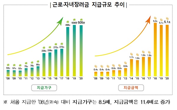 지난 2006년 근로·자녀장려세제 도입 이후 지속적인 제도 개편을 통해 지급가구와 지급금액 모두 대폭 증가했다.