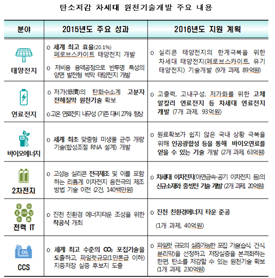 미래부는 신기후체제 출범에 따라 정부의 온실가스 감축 목표를 기술을 통해 실현하고 기후산업시장 창출을 위한 2016년 기후변화대응기술개발사업 시행계획을 수립·확정했다.