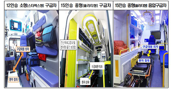 현재 우리나라에서 운영되고 있는 12인승 소형 구급차(1568대 중 1543대, 98.4%)는 환자실이 좁고 구급대원 의자가 환자 침대 뒤쪽이 아닌 대각선에 배치돼 기도확보 등 중환자를 위한 전문 응급처치에 불편함이 있었다.