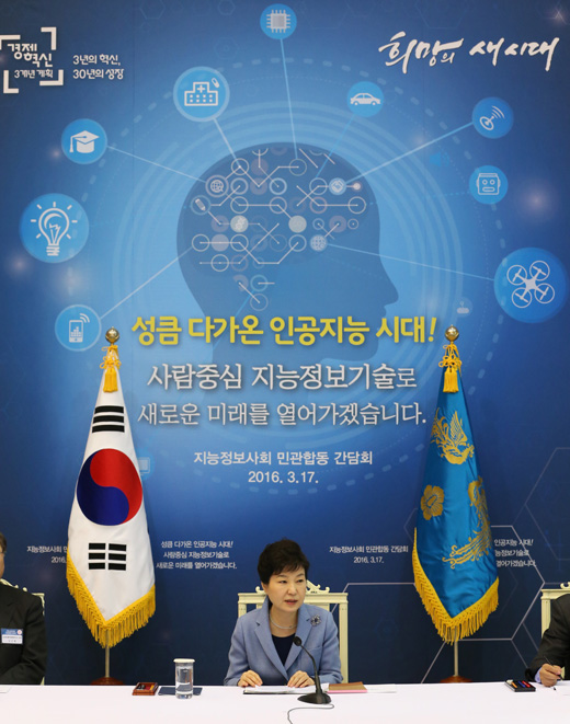 박 대통령은 간담회에서 AI 기술에 대해 막연한 불안감을 갖기보다는 사람 중심의 실용적 접근과 우리가 보유한 ICT 분야의 강점과 문화적 역량을 바탕으로 인공지능 중심의 4차 산업혁명에 능동적으로 대응할 필요가 있다고 강조했다.
