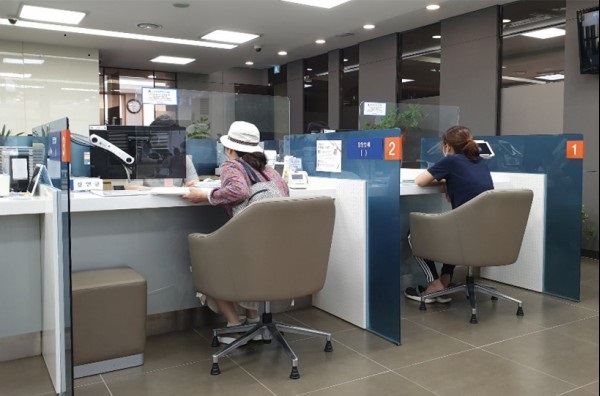 ▲ 서울시내 한 은행창구 모습. (사진=정책기자단)기업은행은 원자재 대금결제, 임직원 급여와 상여금 등 운전자금 용도로 기업당 최대 3억원까지 대출해준다. 결제성 자금대출의 경우 0.3%p 범위 내에서 금리인하 혜택을 제공한다.