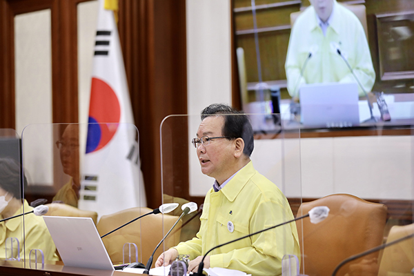 ▲ 김부겸 국무총리가 14일 정부서울청사에서 열린 코로나19 중대본 회의에서 발언하고 있다.(사진=국무조정실)김 총리는 “수도권의 코로나 확산세가 심각하다”며 “5주 연속 확진자 수가 증가하고 최근에는 하루 평균 확진자의 80%가 수도권에서 나오고 있다”고 우려했다.