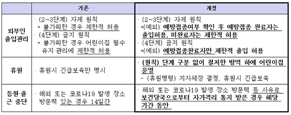 한편 중대본은 보육원 교직원 등의 백신 접종 상황을 고려해 접종 완료자의 출입제한 및 폐쇄 기준 등을 변경했다.
