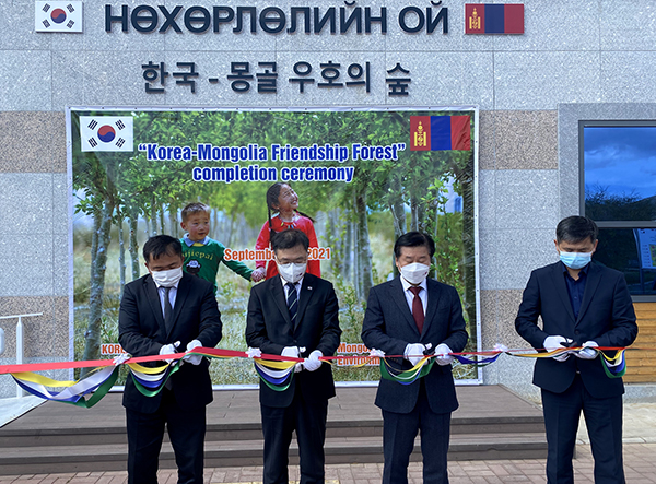 몽골 울란바타르 담부다르자 지역에 조성된 ‘한-몽 우호의 숲’은 몽골에 숲의 중요성을 인식시키기 위해 추진됐다. 도시 숲에는 방문자 안내센터, 놀이터, 체육시설, 자생수목원, 바닥분수 등이 설치돼 있다. 이날 ‘한-몽 우호의 숲’ 준공행사도 열렸다.