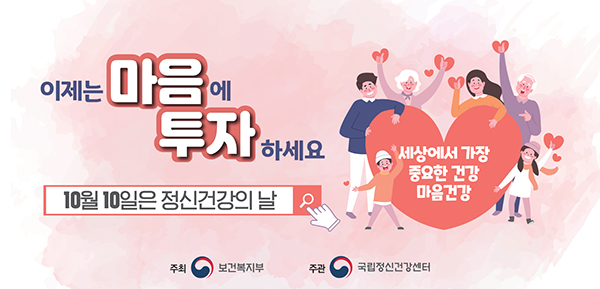올해 정신건강 홍보주간의 핵심 메시지는 ‘이제는 마음에 투자하세요. 세상에서 가장 중요한 건강, 마음건강’이다.