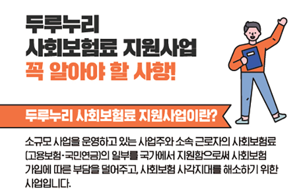 이에 앞서 공단은 두루누리 사회보험료 지원사업을 통해 소규모 사업을 운영하는 사업주와 소속 근로자의 고용보험료 일부를 지원함으로써 부담을 덜어주고 있다.