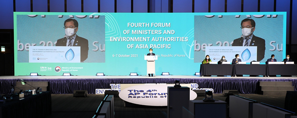 환경부와 유엔환경계획(UNEP)이 공동으로 개최하는 ‘제4차 아시아·태평양 환경장관포럼’의 본회의인 장관급 회의가 7일 수원컨벤션센터에서 열렸다.