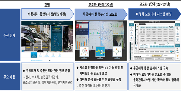 ▲ 무공해차 통합누리집 고도화 추진일정.이번 통합관리 플랫폼 구축은 지난 7월 관계부처 합동 혁신성장 빅3 추진회의에서 발표한 ‘무공해차 충전 기반시설(인프라) 확충방안’ 후속조치로 추진하게 됐다.