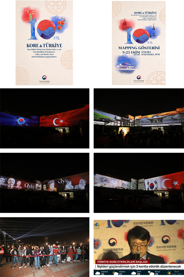 문화원은 여러 장르의 한국문화를 접할 수 있는 콘텐츠로 터키 현지인들에게 다양한 한국문화를 소개하기 위해 터키 내 유동인구가 가장 많은 앙카라·이스탄불·이즈미르에 3D 프로젝트 맵핑(미디어 파사드)을 설치한다. 이를 통해 한국 전통·현대 문화 및 한류 콘텐츠·한국과 터키의 형제애 관련 미디어 파사드 행사를 펼친다.