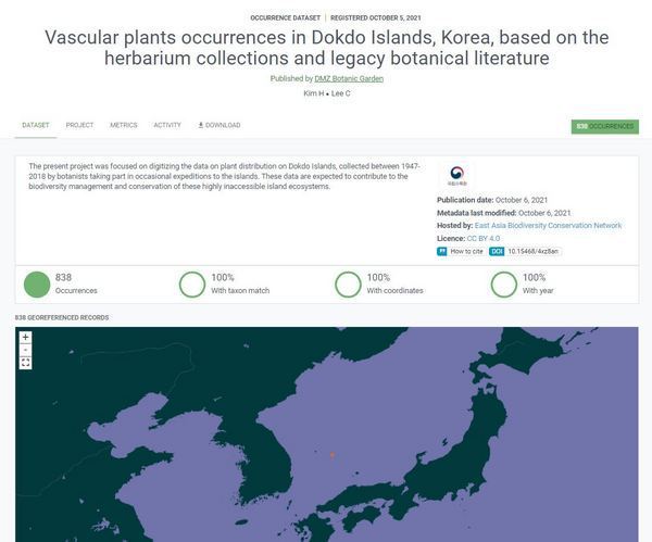이번에 공개한 독도의 식물상 정보는 세계생물다양성정보기구(GBIF, www.gbif.org)에서 전 세계 어디에서나 내려받을 수 있다.