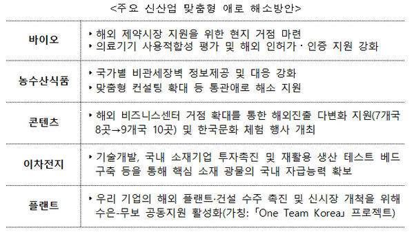 바이오, 농수산식품 등 신성장 산업에 대한 맞춤형 애로 해소와 함께 전시사업 정상화도 적극 지원한다.