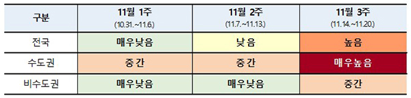 이날 중앙방역대책본부 정례브리핑을 진행한 정 본부장은 11월 3주 차 코로나19 주간 위험도평가 결과를 설명하면서 이같이 말했다.