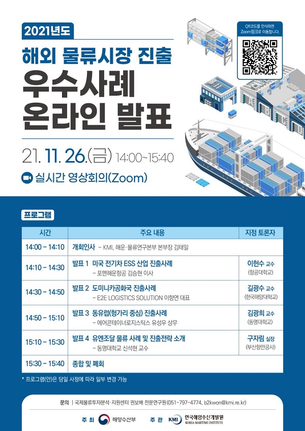 해양수산부는 26일 ‘2021년 해외 물류시장 진출 우수사례 온라인 발표회’를 개최한다고 25일 밝혔다.