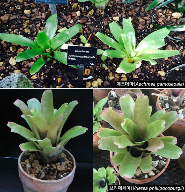국립수목원 열대식물자원연구센터에서는 실내식물로 개발 가능성이 큰 파인애플과 식물(Bromeliad)을 대상으로 휘발성유기화합물질 제거 효과를 실험한 결과, 애크메아(Aechmea gamosepala)와 브리에세아(Vriesea phillipocoburgii)가 도움이 되는 것으로 나타났다.