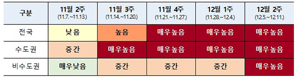 [일간환경연합 신상미 기자]일상회복지원위원회 방역의료분과위원회의 코로나19 종합적인 위험도 평가 결과 전국·수도권·비수도권 모두 ‘매우 높음’으로 평가됐다.