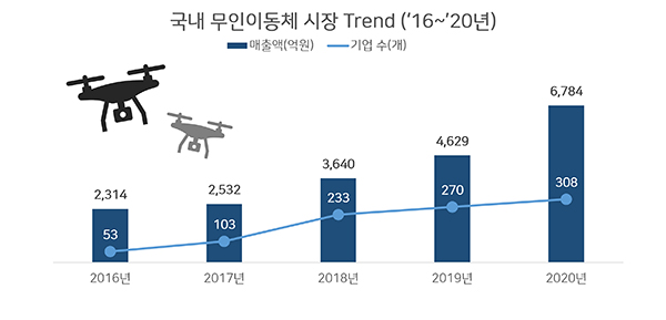 [일간환경연합 한선미 기자]지난해 무인이동체 기업 매출은 총 6784억원으로, 최근 3년간 연평균 39.2% 성장한 것으로 나타났다.