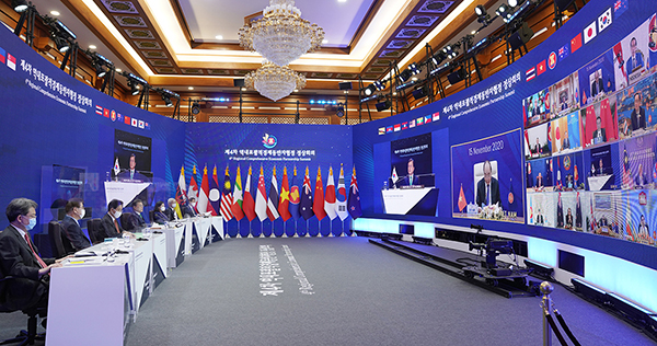 ▲ 지난해 11월 15일 청와대 본관에서 화상회의로 열린 제4차 역내포괄적경제동반자협정(RCEP) 정상회의 모습.◆ 기대 효과는