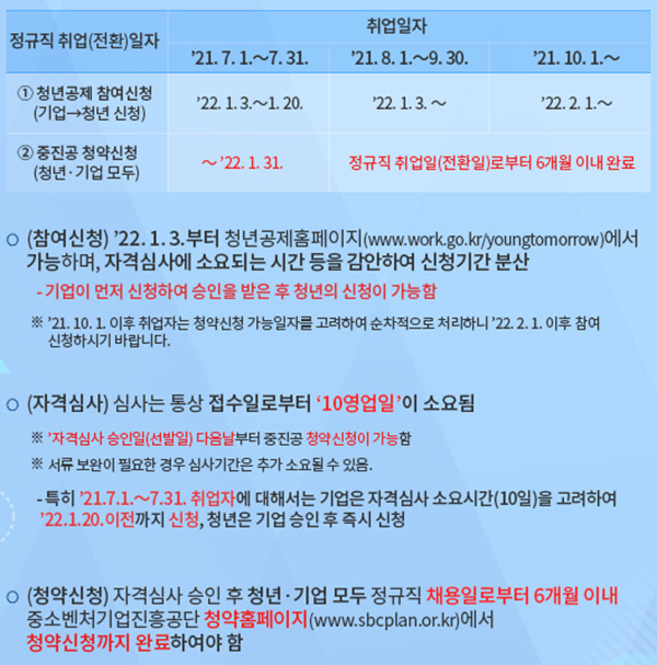 ▲ 2022년도 청년내일채움공제 신청 안내.권창준 고용부 청년고용정책관은 “청년내일채움공제는 청년에게는 초기 경력 및 자산 형성을 통해 향후 발전의 주춧돌을 쌓게 하고, 기업에게는 우수한 청년 인재의 장기근속을 통해 성장의 계기를 마련해 주는 등 청년과 기업 모두에게 의미있는 사업”이라고 강조했다.