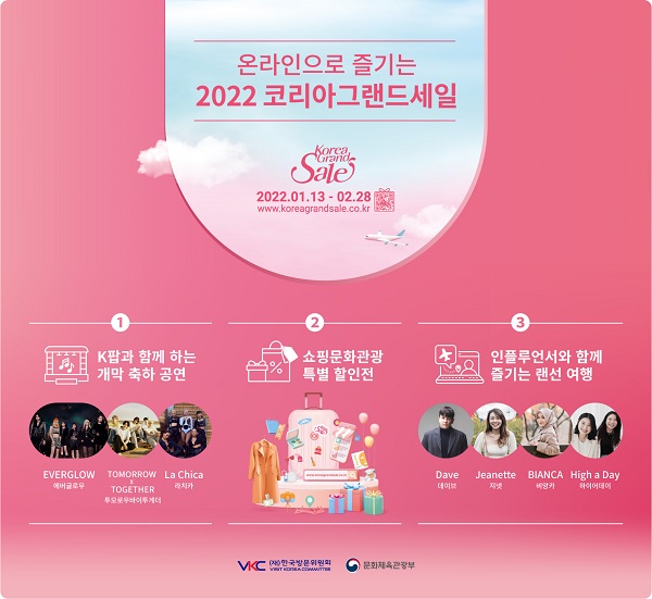 [일간환경연합 장민주 기자]문화체육관광부는 12일 (재)한국방문위원회와 함께 13일부터 다음 달 28일까지 외국인을 대상으로 ‘2022 코리아그랜드세일(Korea Grand Sale)’을 개최한다고 12일 밝혔다.