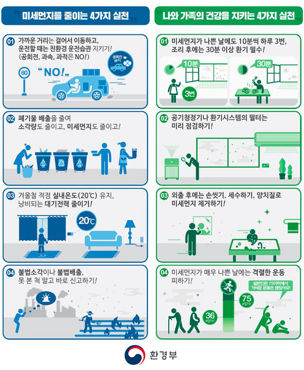 일상생활 속에서 실천할 수 있는 ‘미세먼지 줄이고 건강은 지키는 8가지 수칙’을 소개한다.