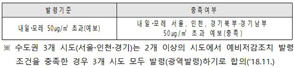 ▲ 예비저감조치 발령기준 및 충족여부(초미세먼지 PM2.5)