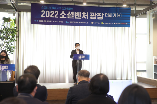 ▲ 차정훈 중소벤처기업부 실장이 17일 서울시 헤이그라운드 서울숲점에서 열린 2022 소셜벤처 광장더하기 행사에 참석해 인사말을 하고 있다.(사진=중소벤처기업부)이번 실태조사는 지난해 8월 기준 벤처특별법에 따라 사회성과 혁신성장성 요건을 갖춰 소셜벤처로 판별된 기업 2031개사를 대상으로 2020년 말 기준 재무 고용, 투자 등 설문조사를 실시한 결과다.
