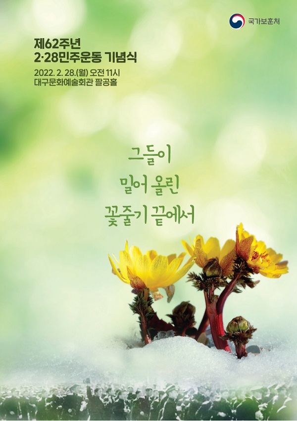 특히 포스터에 담긴 꽃은 차가운 눈 속에서 가장 먼저 피는 ‘얼음새꽃’으로 엄혹한 시대에 가장 먼저 민주주의를 외친 대구 2·28민주운동을 표현했다.