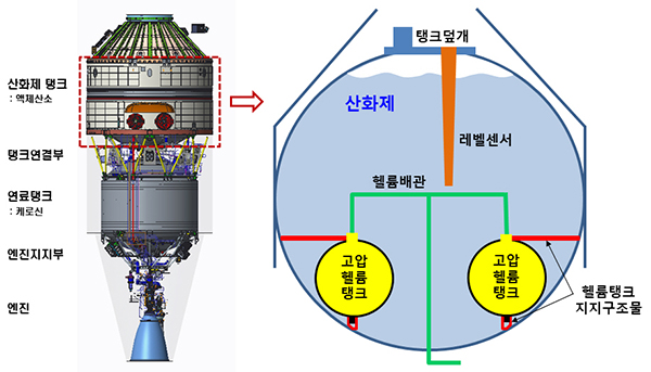 이에 따라 누리호에 적용될 주요 개선 사항은 3단 산화제탱크의 헬륨탱크 하부지지부와 맨홀덮개의 구조를 변경·보강 등이다.