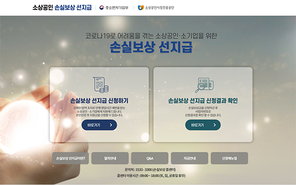 보다 자세한 내용은 ‘손실보상선지급.kr’ 또는 소상공인 정책자금 누리집(http://ols.sbiz.or.kr)에서 확인하거나 손실보상 콜센터(1533-3300), 소진공 70개 지역센터에서 안내받을 수 있다.