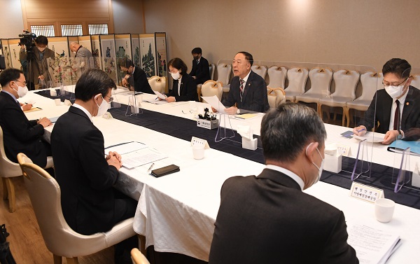 홍 부총리는 이날 발표된 2월 소비자 물가상승률이 3.7%를 기록하고, 러시아의 우크라이나 침공 등으로 국제유가가 2014년 7월 이후 처음으로 배럴당 100달러를 넘은 것과 관련해 “일각에서 전세계적으로 예전의 인플레이션 악순환에 진입할 수 있다는 우려까지 제기되는 매우 중차대한 시기”라고 말했다.