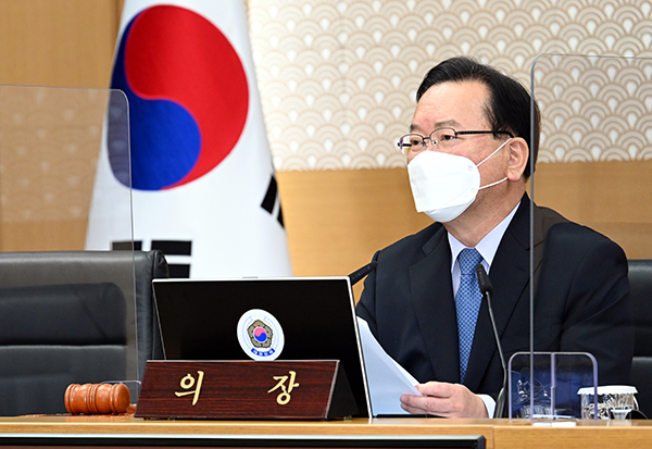 ▲ 김부겸 국무총리가 15일 정부세종청사에서 열린 국무회의를 주재하고 있다.(사진=국무조정실)김 총리는 “코로나19와 대외경제 상황이 매우 엄중하다”며 “자칫 국정운영에 공백이 발생하지 않도록 마지막까지 긴장감을 가지고 기민하게 대응해달라”고 밝혔다.
