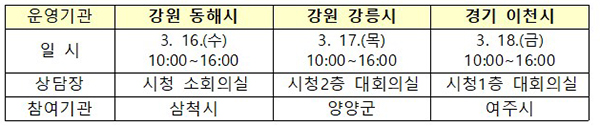 [일간환경연합 장민주 기자]국민권익위원회가 동해시·강릉시·이천시에서 산불로 인해 피해를 입은 주민들의 불편과 행정·법률 문제, 복지혜택 수급 등 생활 속 고충을 상담하는 ‘달리는 국민신문고’를 오는 16일부터 18일까지 운영한다.