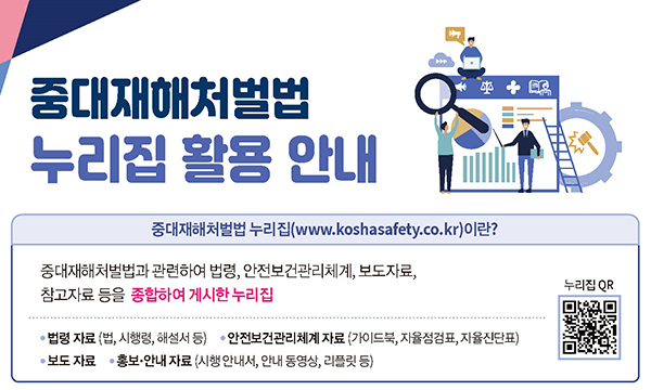 한편 고용노동부는 이번 안내서를 중대재해처벌법 누리집(http://www.koshasafety.co.kr) 등에 게시하고, 인쇄본을 원하는 기업을 위해서는 산업안전보건공단의 미디어 현장배송 서비스(https://media.kosha.or.kr/main, 02-6942-9450)를 통해 나누어 줄 예정이다.