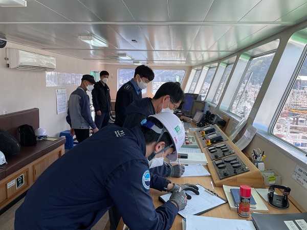 ▲ 지난해 연안여객선 안전점검 현장.<사진=해양수산부>봄철은 안개가 짙게 끼는 날이 많고 섬 지역을 방문하는 여행객이 증가하는 시기라 여객선 안전운항에 각별한 주의가 필요하다.