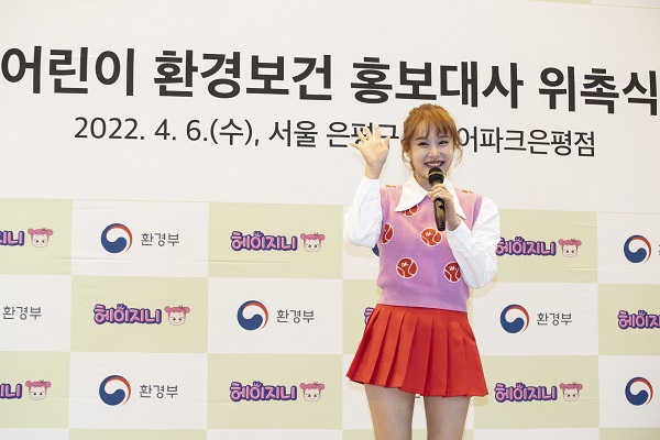 이날 열린 홍보대사 위촉식에서는 홍정기 환경부 차관이 헤이지니에게 위촉장을 수여했으며, 헤이지니는 향후 어린이 환경보건 영상에 출연해 환경부의 어린이 환경보건 정책과 건강보호의 중요성을 널리 알릴 예정이다.