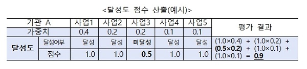 또한 기관별 달성도 점수 산출의 기준이 되는 사업별 목표 달성에 따른 배점 차이를 확대해 변별력을 강화했다.