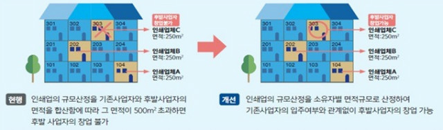 주민밀착형 소규모 사무소 창업지원 일환으로 부동산중개소, 금융업소등은 주거생활 필요 시설임에도 규모에 관계없이 제2종근린생활시설로 분류돼 주거지역 입지제한 등의 불편이 있어 30㎡이하 소규모는 제1종근생시설로 포함해 앞으로는 전용주거지역 또는 지구단위계획 구역 내 점포형주택에 주민밀착형 시설의 입지로 소규모 창업이 가능토록 했다.