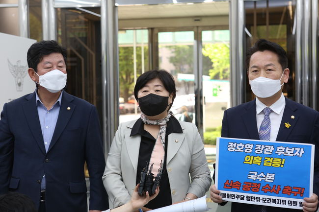 서 위원장은 경찰청 앞에서 기자들에게 "정 후보자 인사 검증 과정에서 엄청난 의혹들이 나와 국민들이 문제를 제기하고 있다"면서 "자녀들 의대 편입과정에서 `아빠 찬스`, `권력 찬스`가 있었다는 문제가 제기되고 있다"고 말했다.