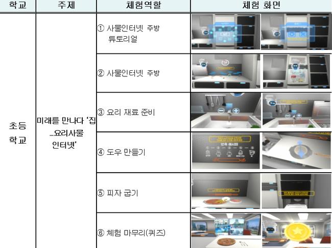 올해 체험학교에서 새롭게 선보이는 실감교육 콘텐츠는 학생들이 미래의 가정, 학교, 사회에서 접할 수 있는 일상생활을 구체화하여 상황별로 미래 유망진로를 체험해 볼 수 있는 총 21종의 콘텐츠로 구성된다.