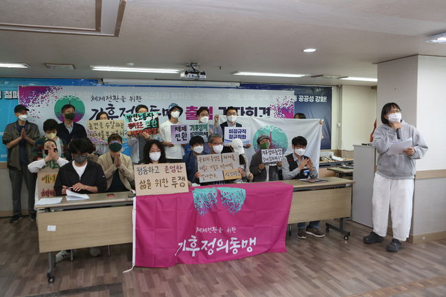 [일간환경연합 김경훈 기자] `체제전환을 위한 기후정의동맹`은 28일 서울 중구 민주노총에서 출범 기자회견을 열고 ‘평등하고 존엄한 삶을 위한 투쟁’을 전개해 나갈 것임을 천명하고 나섰다.