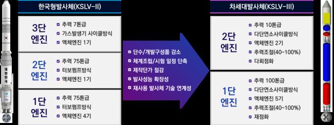 차세대 발사체는 액체산소-케로신 기반 2단형 발사체로 개발된다. 1단 엔진은 100톤급 다단연소사이클 방식 액체엔진 5기가 클러스터링 되고, 재점화, 추력조절 등 재사용발사체 기반기술이 적용되며, 2단 엔진은 10톤급 다단연소사이클 방식 액체엔진 2기로 구성되고 다회점화, 추력조절 등의 기술이 적용된다.