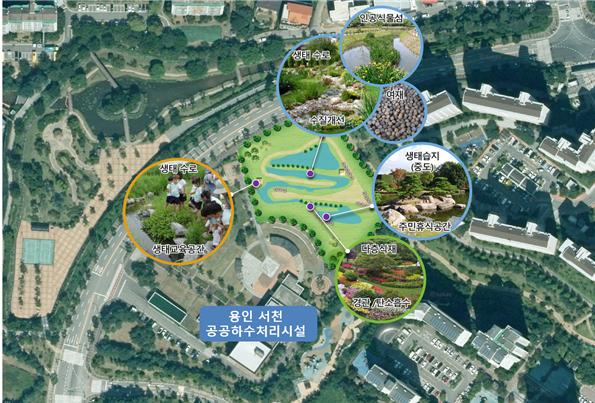 용인 서천 공공하수처리시설 현황 및 생태수로 조감도.