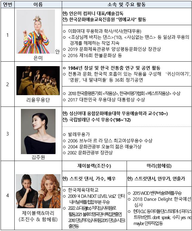 ‘꿈의 무용단’ 홍보대사 주요 약력