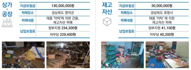 금천구는 총 보험료의 70%~92%까지 지원한다. 가입자는 가입 기간 태풍, 호우, 홍수, 지진, 대설, 강풍 등 광범위한 자연재해 피해에 대해 보상받을 수 있다.