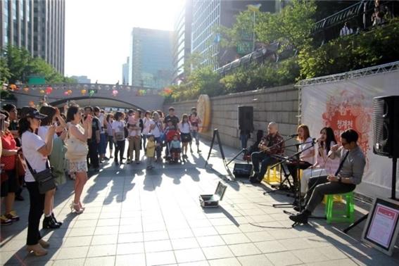청계천 수변 문화공연은 12월말까지 연중으로 12시부터 22시까지 수시로 열릴 예정이다.
