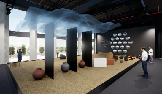 전시장 이미지 키워드 : ‘땅’, ‘하늘’, ‘태양’에 기초한 초자연적이고 원초적인 대지를 표현, 땅의 기초에서 공예는 태어나고 흙으로 돌아간다.